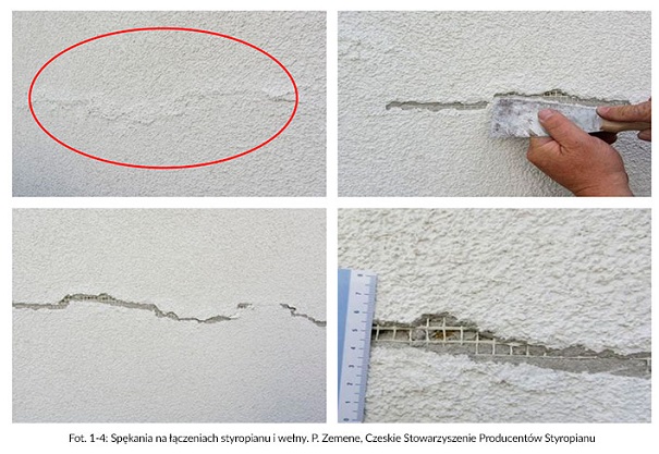 Fot. 1-4: Spękania na łączeniach styropianu i wełny. P. Zemene, Czeskie Stowarzyszenie Producentów Styropianu